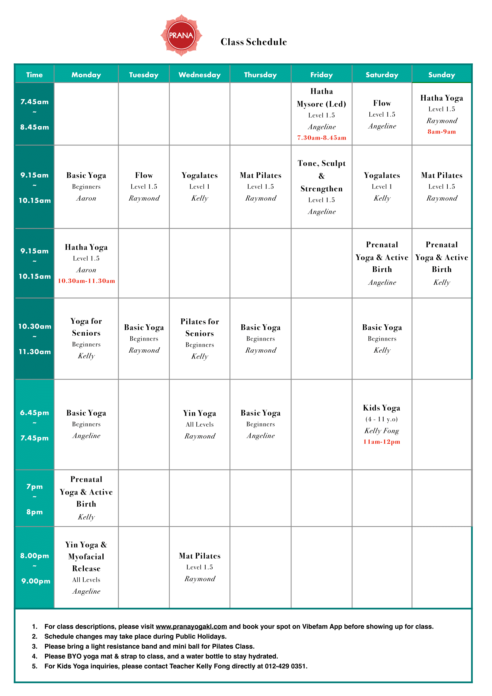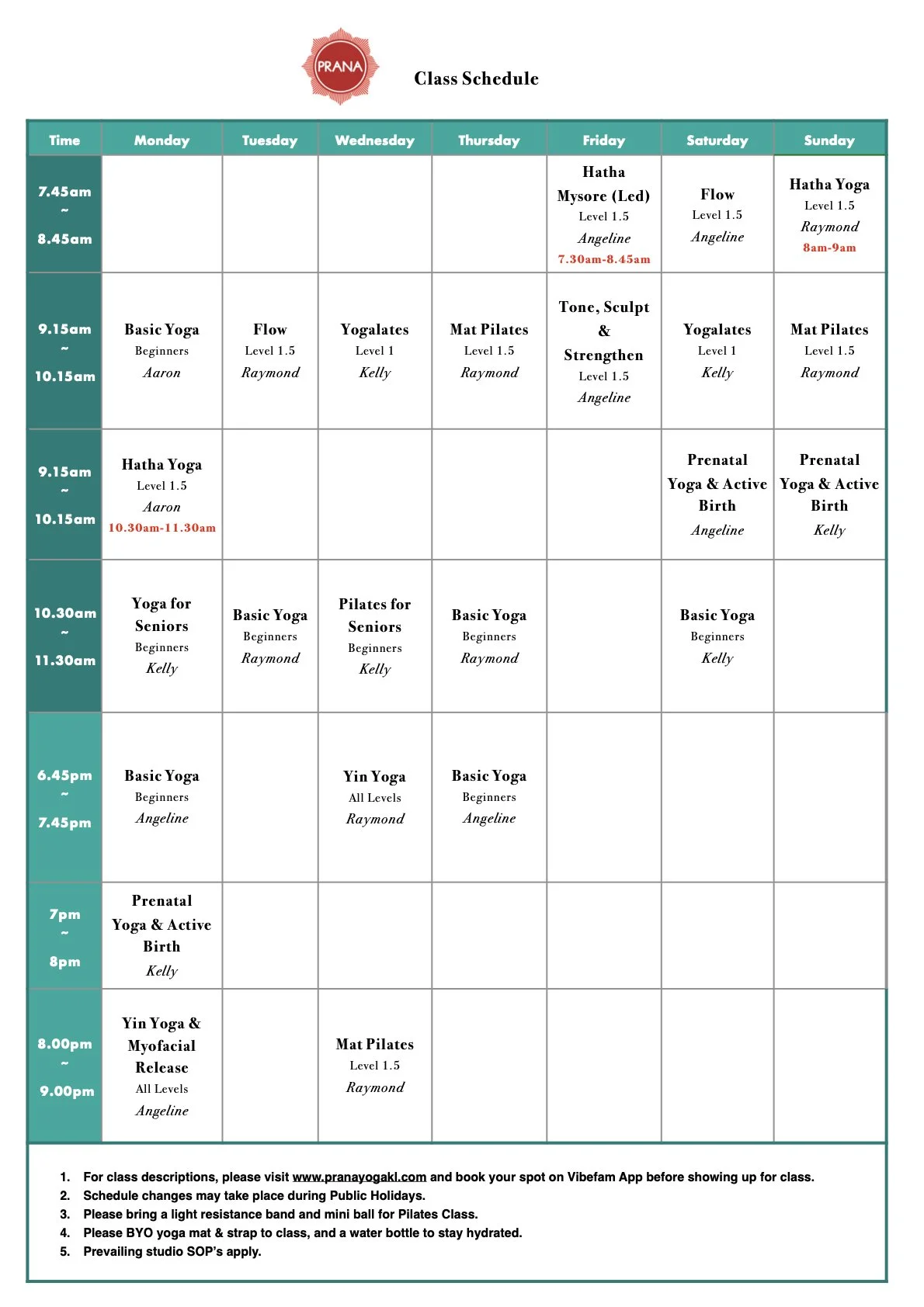We reserve the right to cancel or replace any classes. Changes of class schedule may take place during Public Holidays.